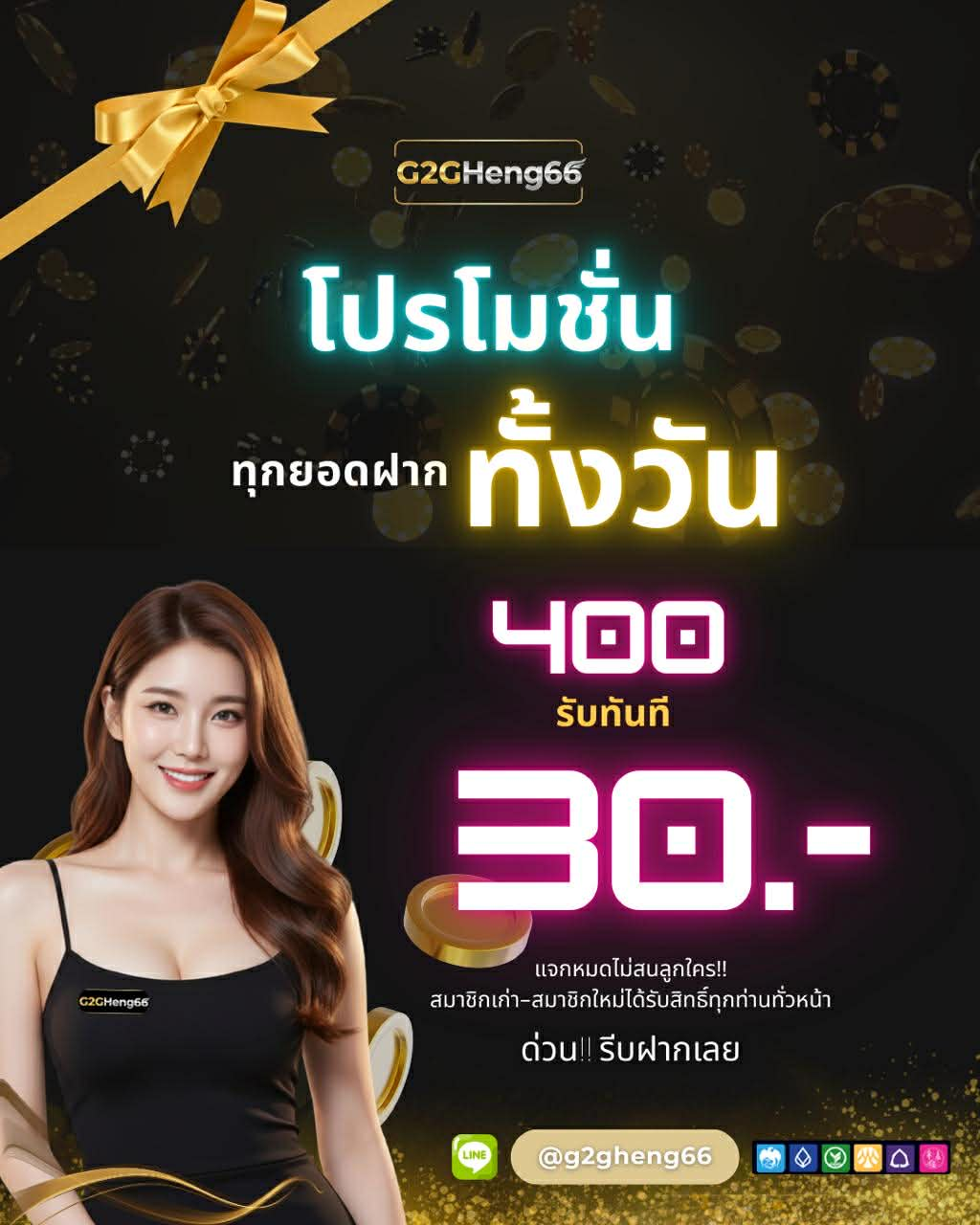 โปรโมชั่นทุกยอดฝากทั้งวัน ฝาก เพียง 400บาท รับโบนัสไปทันที 30 บาท